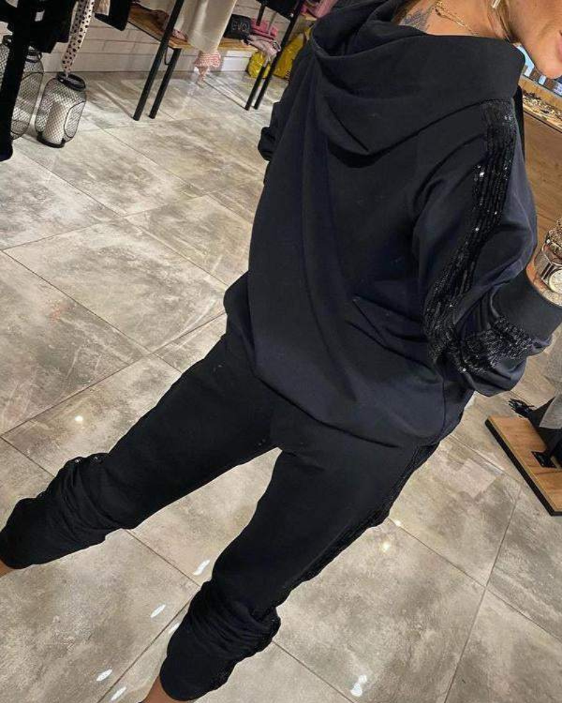 ✅Κομψές λεπτομέρειες με πούλιες: Το σετ δύο τεμαχίων Gretta αναβαθμίζεται με λαμπερά πάνελ με πούλιες κατά μήκος των μανικιών και των μπατζαριών. Αυτές οι λεπτομέρειες αντανακλούν όμορφα το φως, προσθέτοντας μια διακριτική αλλά γοητευτική λάμψη στα καθημερινά σας ρούχα. Ισορροπεί τέλεια την άνεση του casual με μια νότα γοητείας, καθιστώντας το ιδανικό τόσο για χαλάρωση όσο και για έξοδο.