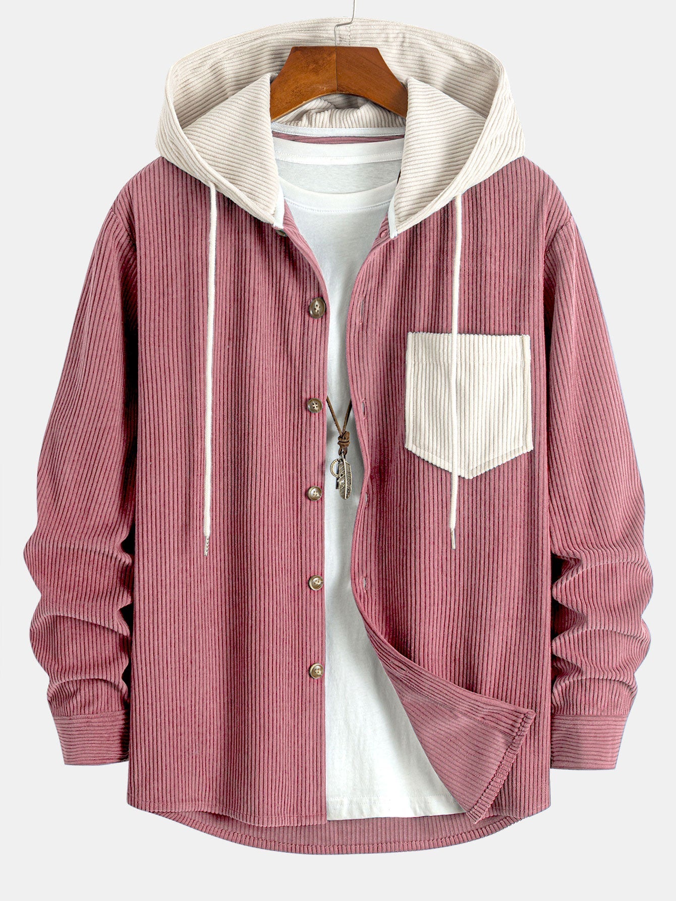 Αυτό το casual πουκάμισο με κουκούλα είναι κατασκευασμένο από κοτλέ ύφασμα και έχει μια απαλή, vintage εμφάνιση. Η κουκούλα και οι τσέπες στο στήθος είναι φινιρισμένες με υπόλευκο κοτλέ, το οποίο контраστιζει εντυπωσιακά με το κύριο σώμα και προσθέτει μια αίσθηση στρωματοποίησης και σχεδιασμού. Ιδανικό για καθημερινή χρήση ή διακοπές την άνοιξη και το φθινόπωρο, συνδυάζει άνεση και στυλ.